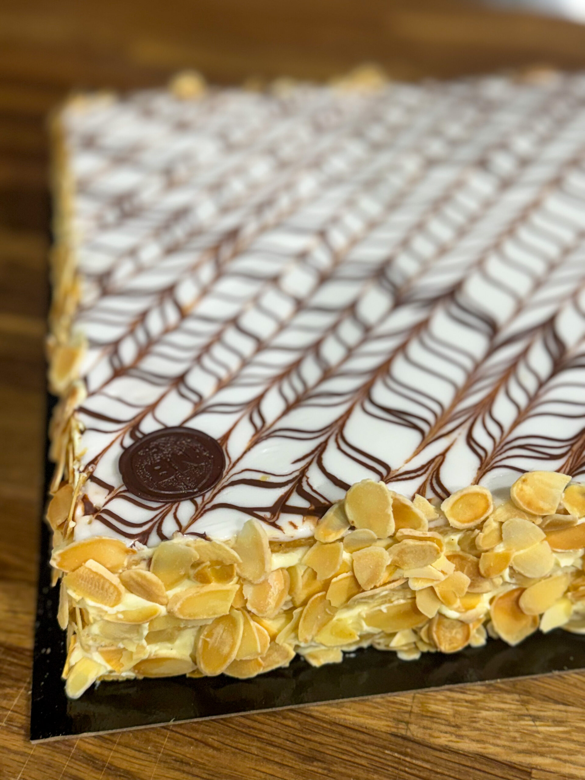 Pâte feuilletée caramélisée, crème diplomate vanille, fondant